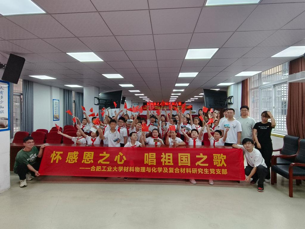 9月19日,材料学院材料物理与化学及复合材料研究生党支部联合三里街街道临淮路社区团支部为合肥市瑶海实验小学的同学们举行了“怀感恩之心,唱祖国之歌”主题活动。