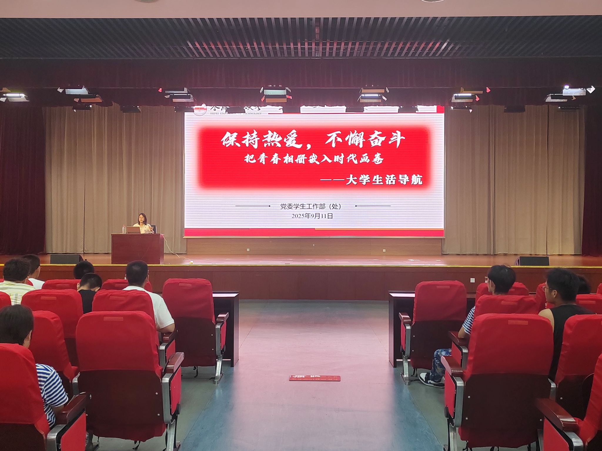 9月11日晚,suncitygroup太阳集团在翡翠科教楼二楼大报告厅以“保持热爱,不懈奋斗”为主题开展大学生活导航宣传报告会。入学教育巡讲团成员、文法学院团委书记宋燕应邀作报告。材料学院全体2025级新生参加本次活动。